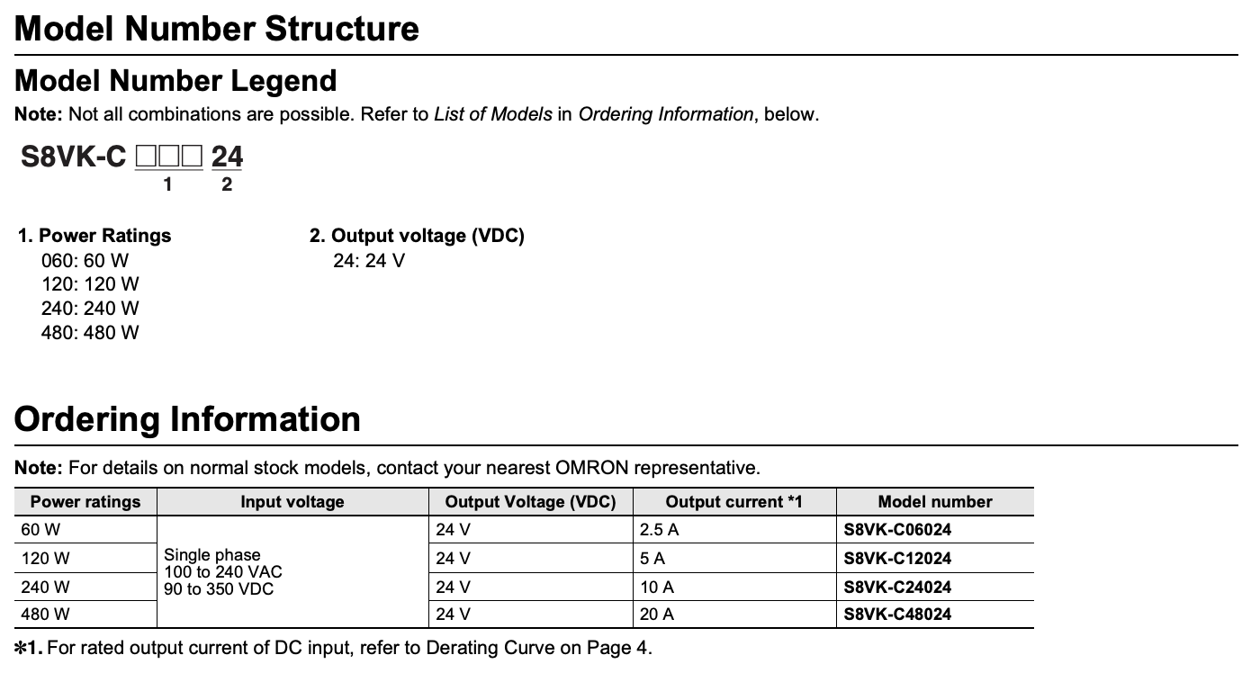 a) Thông số chung bộ nguồn Omron S8VK-C48024