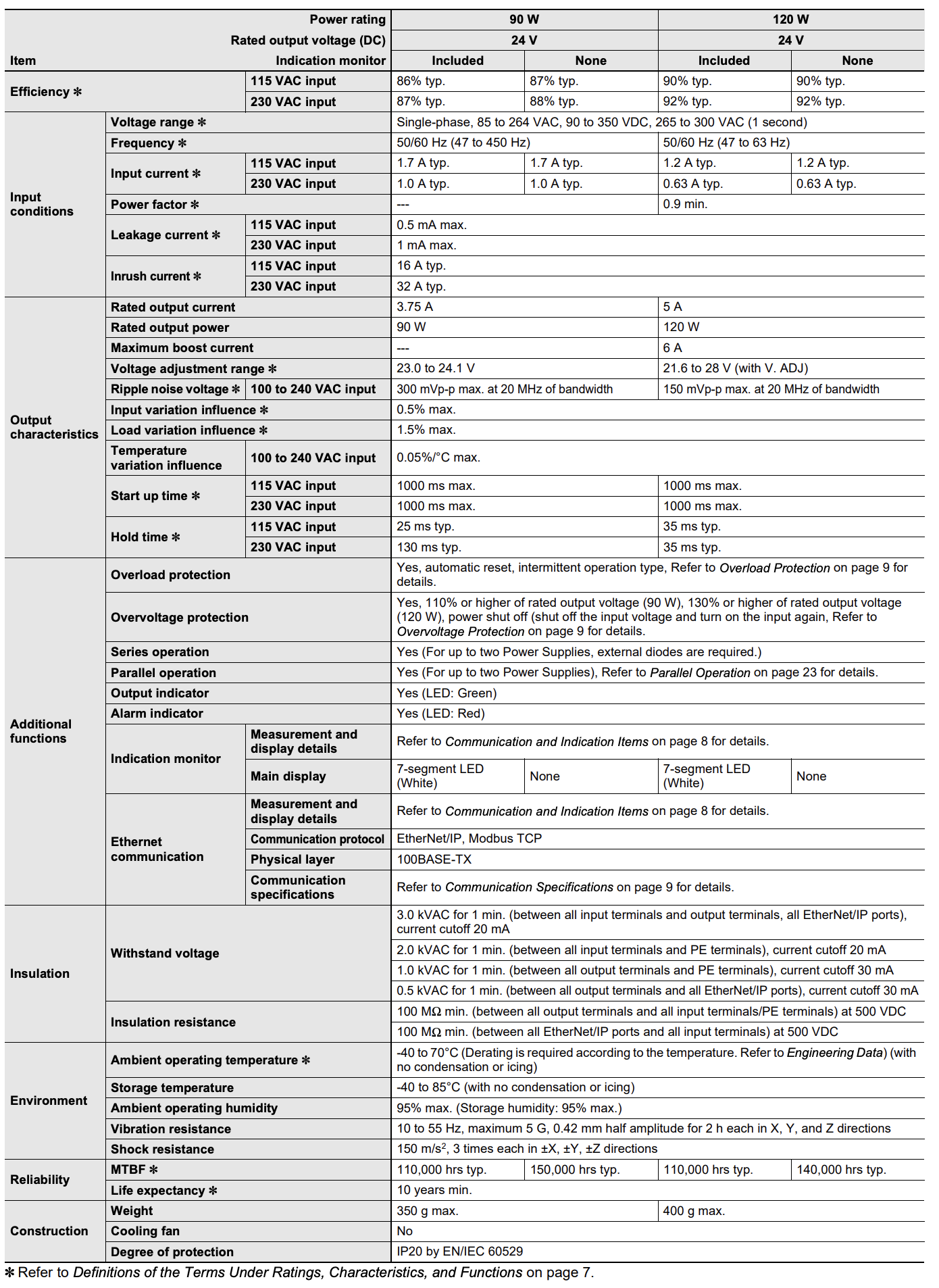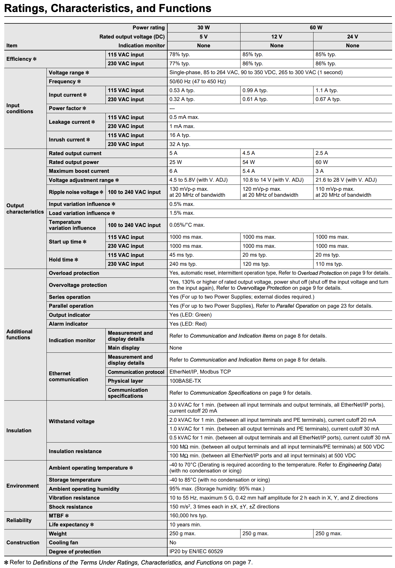 - Book type power supply, 60 W, 24 VDC, 2.5 A, DIN rail mounting, Push-in terminal, Coated, Ethernet IP / Modbus TCP compatibility