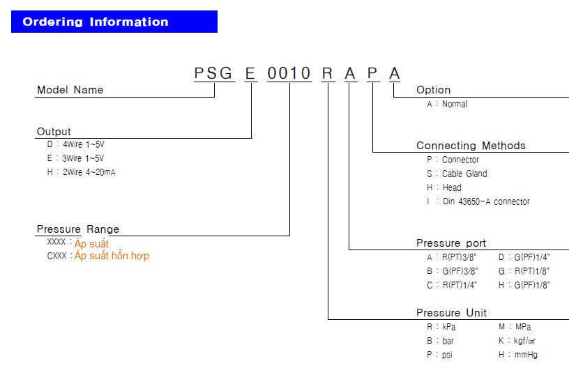 1) Thông số kỹ thuật Cảm biến áp suất SENSYS PSG (đo khí)