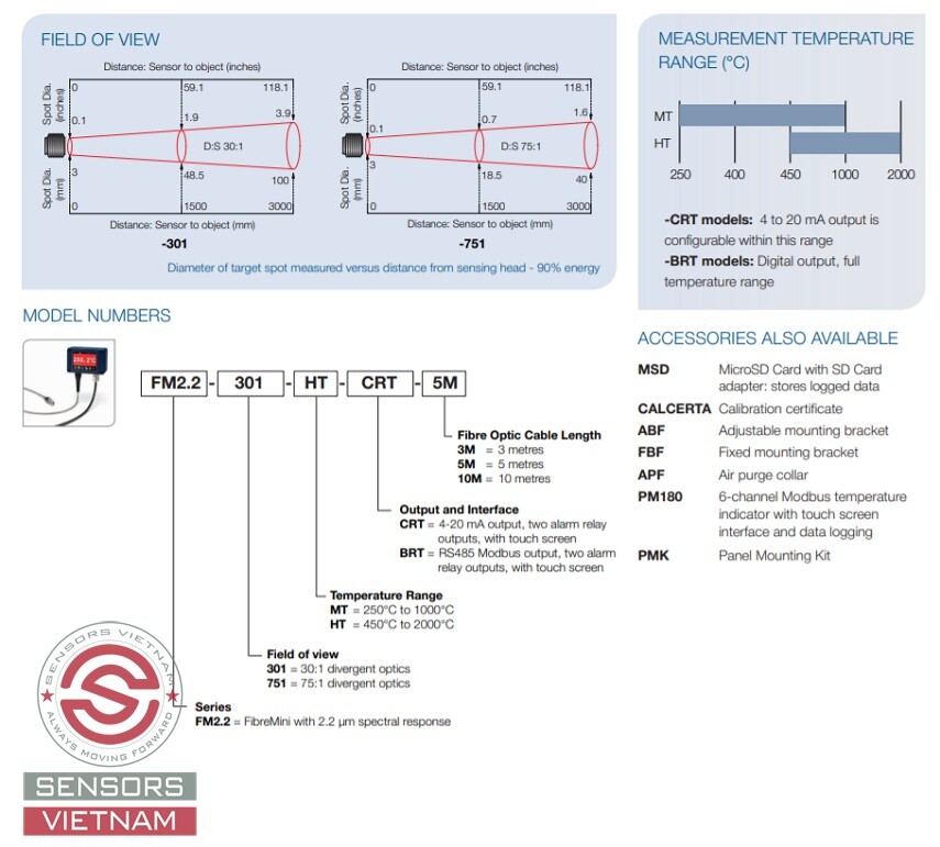1) Thông số kỹ thuật Cảm biến nhiệt độ hồng ngoại CALEX FIBREMINI FM2.2-751-MT-CRT-3M