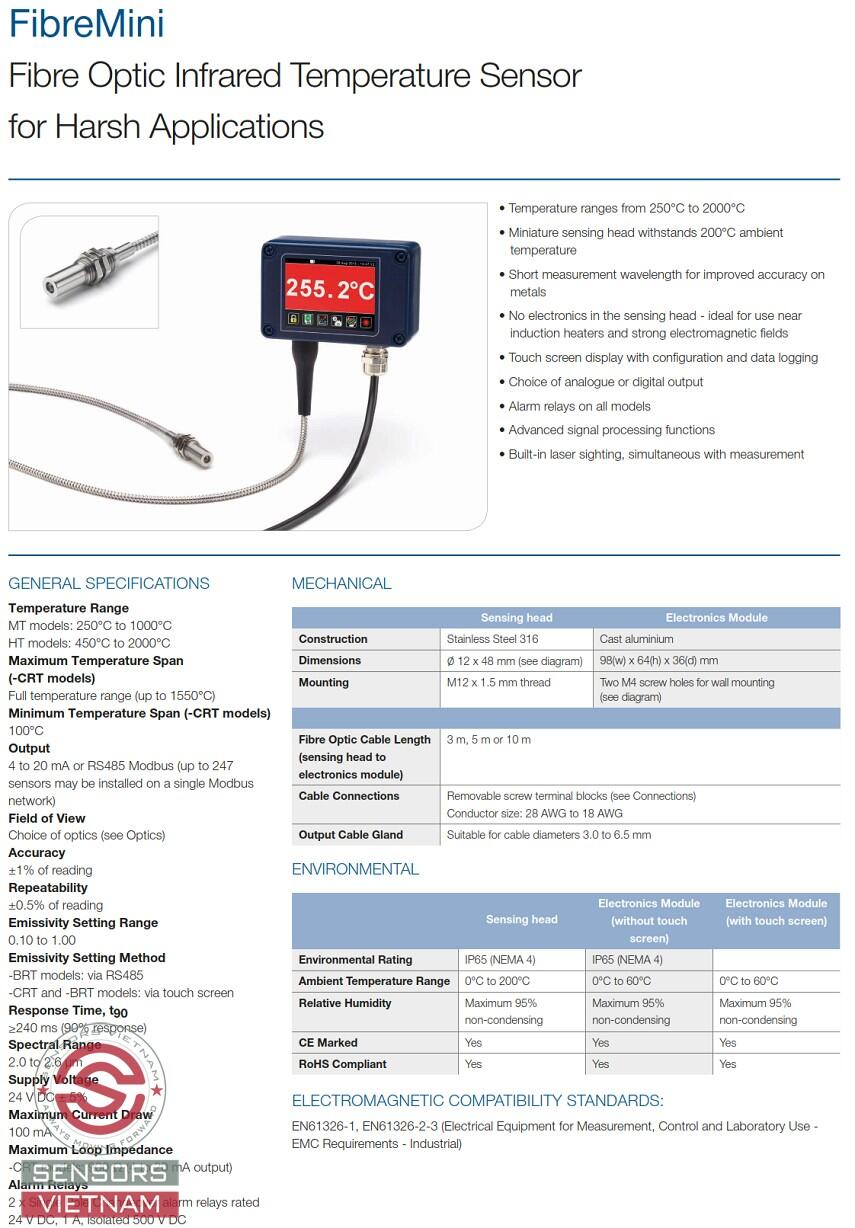 1) Thông số kỹ thuật Cảm biến nhiệt độ không tiếp xúc FIBREMINI CALEX