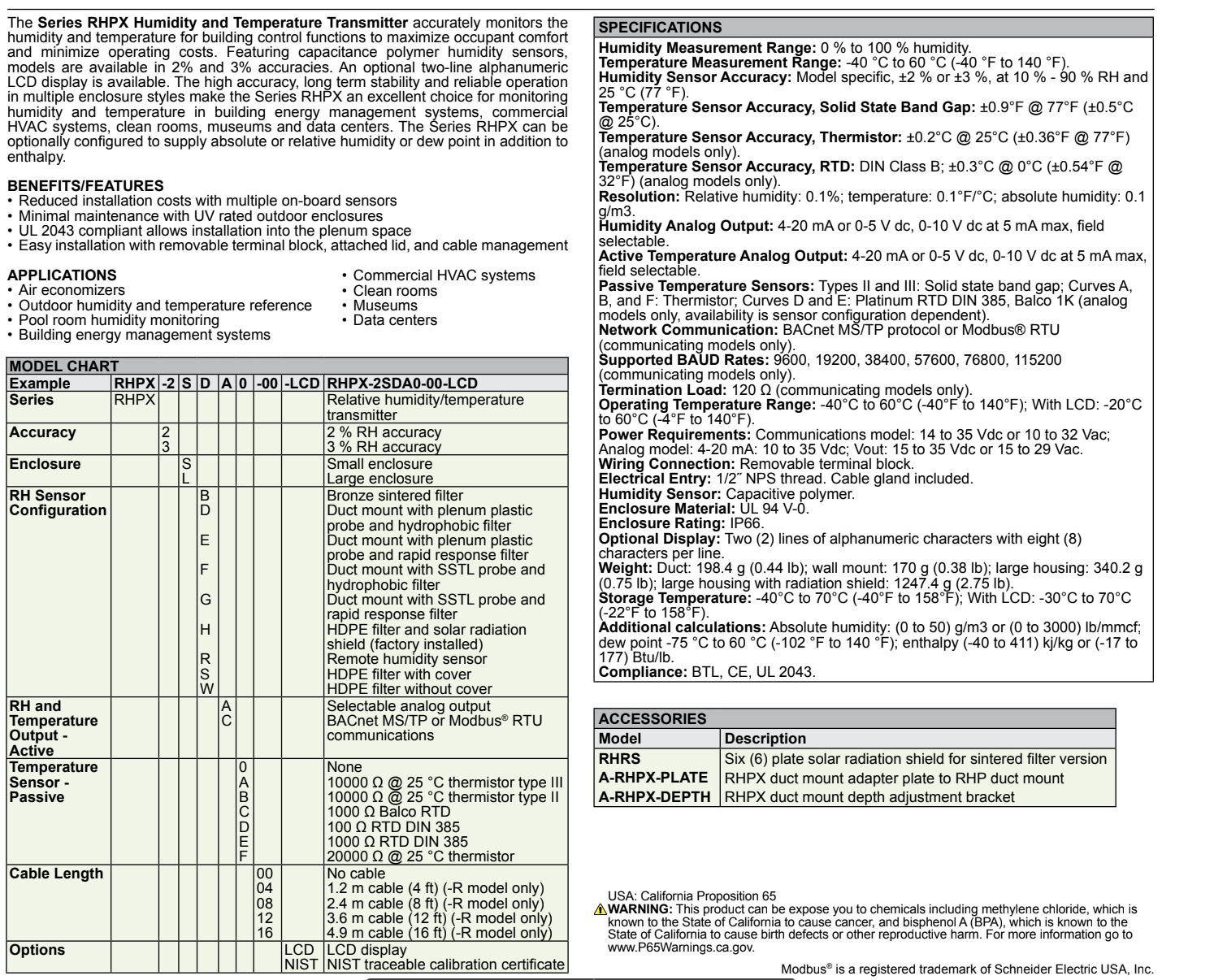 Cảm biến nhiệt độ và độ ẩm RHPX Series được ứng dụng phổ biến trong việc đo kiểm chất lượng không khí trong tòa nhà, nhà máy, phòng sạch và hệ thống máy điều hòa AHU, PAU.