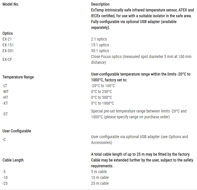 Cảm biến nhiệt hồng ngoại chống cháy nổ EX