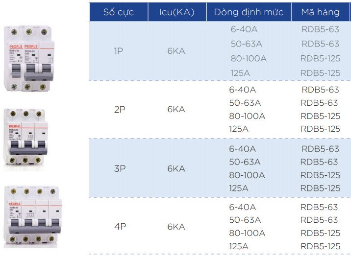 MCCB Dòng cắt 6000A - RDB5-63 - RDB5-125 3P 6kA