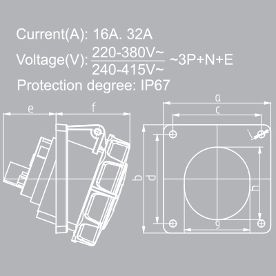 Ổ cắm loại cố định bắt trên bảng điện xéo MPN-4342