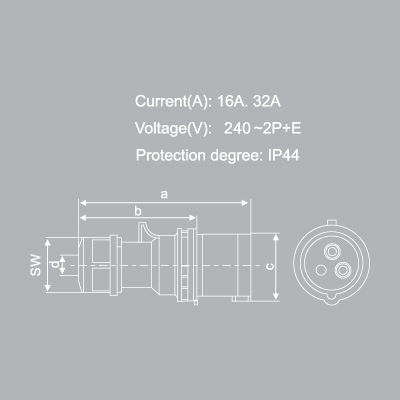 - a-146 mm; b-100 mm; c-63 mm; d-10-20 mm; sw-50 mm