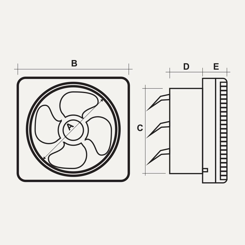 - AF-200 Ceiling Surface Fan size (AxBxCxDxE)mm: 200mm x 290mm x 230mm x 83mm x 61mm