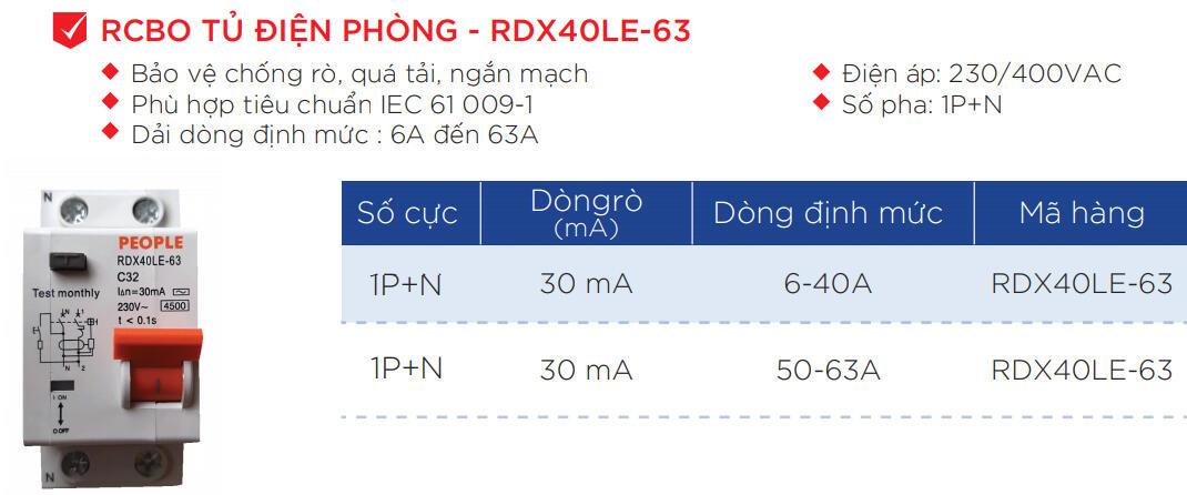 RCBO tủ điện phòng - RDX40LE-63 1P+N