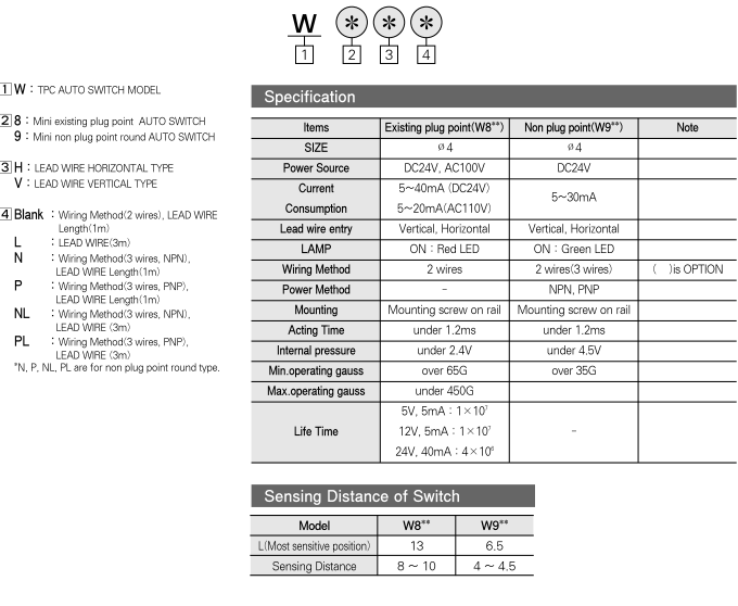 Thiết bị khí nén TPC (Korea) - Model Cảm biến W8H