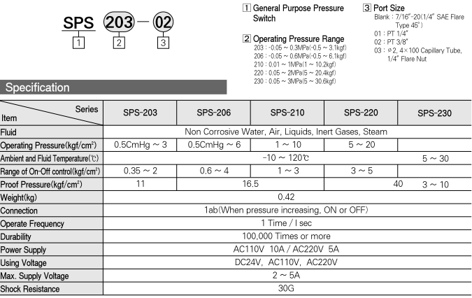 Thiết bị khí nén TPC (Korea) - Model Công tắc áp suất SPS