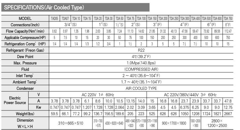 Thiết bị khí nén TPC (Korea) - Model Máy sấy khô TAD