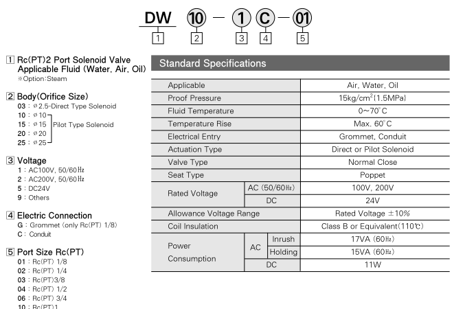 Thiết bị khí nén TPC (Korea) - Model Van điện từ nước-hơi-nhiệt TPC DWS
