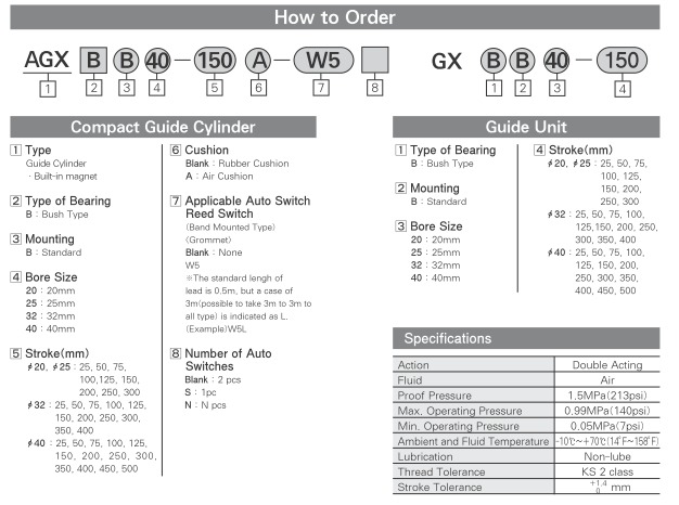 Thiết bị khí nén TPC (Korea) - Model Xilanh dẫn hướng AGX-GX
