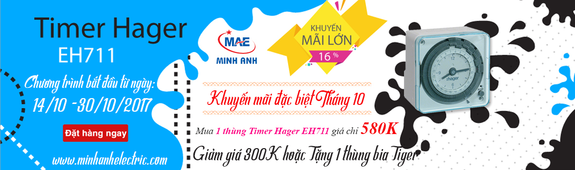 ✓ Mua 1 thùng Timer Hager EH711 giá chỉ còn 580K/1 Con. Tặng ngay 1 thùng bia Tiger hoặc giảm giá 300K cho khách hàng khi mua.