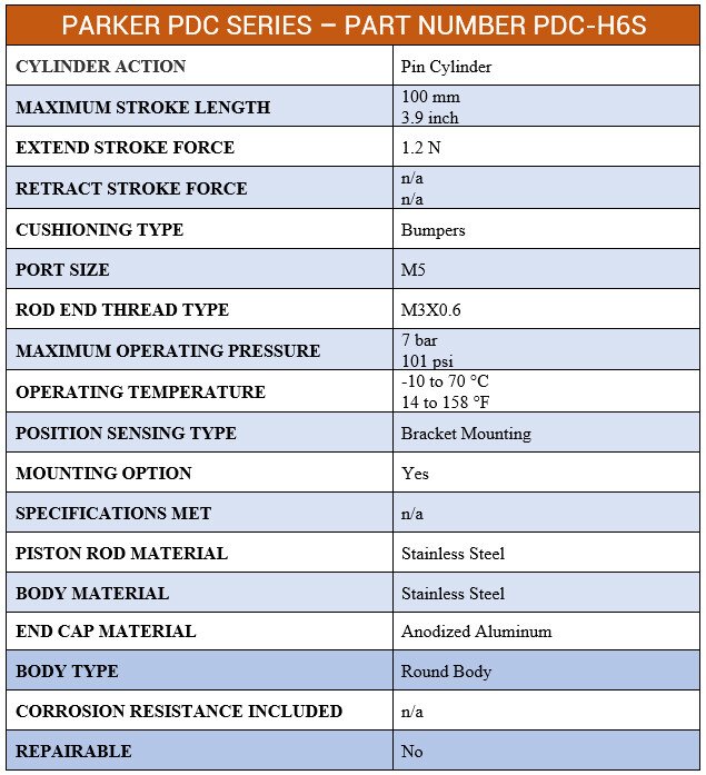1) Thông số kỹ thuật Xi lanh khí nén Parker PDC-H6S